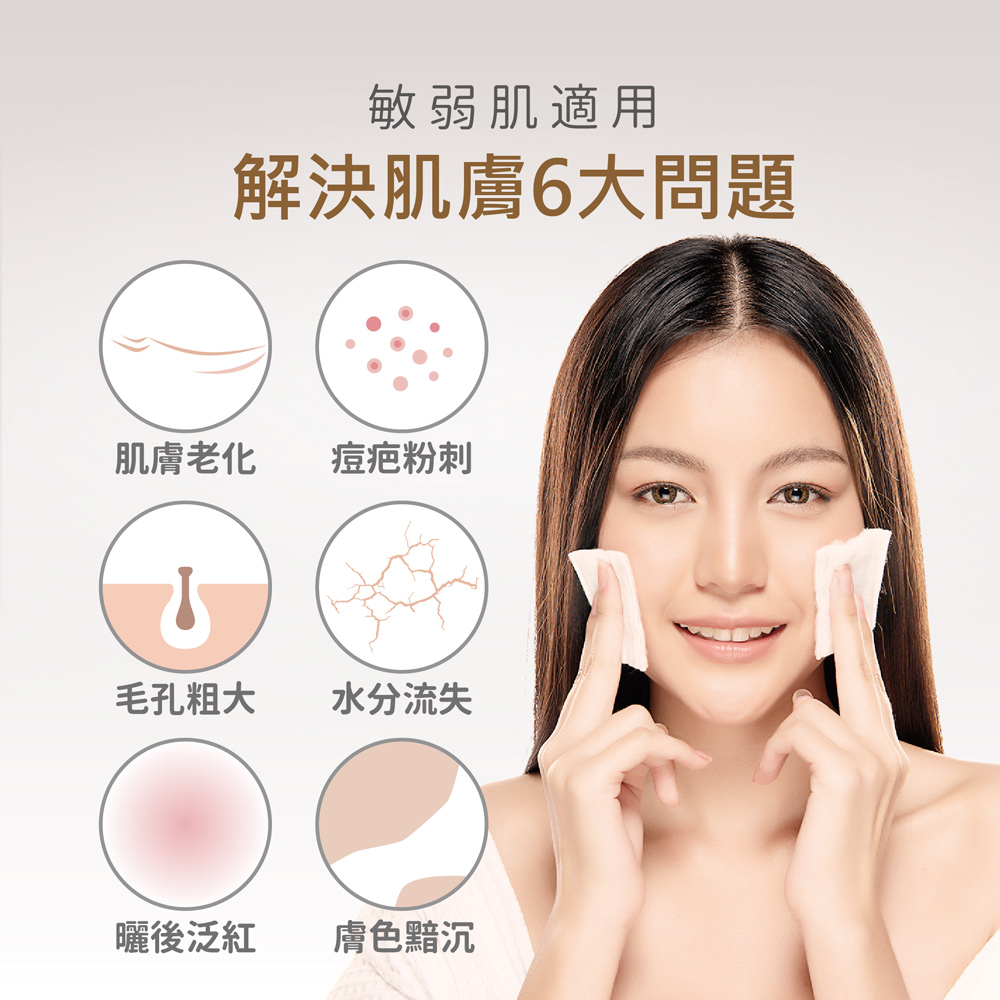 #濕敷用法:在化妝棉或膜布上取適量原液精露,像面膜一樣敷在需要特別護理的部位(額頭、臉頰、下巴等)5-10分鐘。後取下化妝棉或膜布即可。